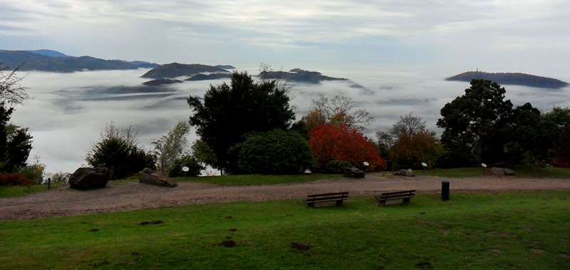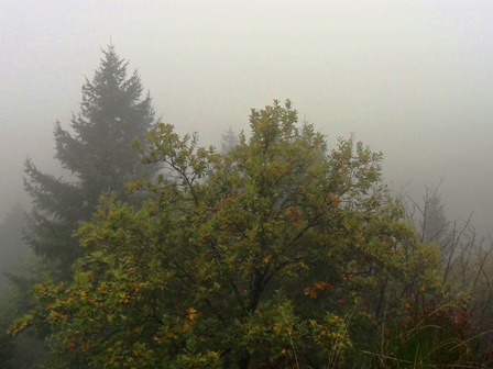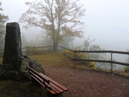 Der Mein 2. Tag beginnt nass, kalt und grau in Langenbrand. Die Aussichtsfelsen Dachstein und Elsbethhütte geben außer Nebel nichts her