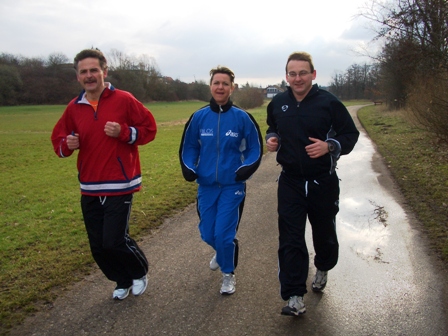 10.15 Uhr sollte es am Steinsweg losgehen. Warmlaufen, Dehnen, fertig