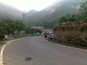 stetig Treppen auf und ab, zu letzt 5km Strasse bergab ins Ziel. Da es