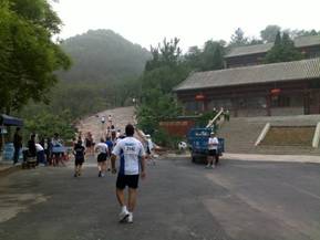 Anfangsrunde: Zuerst die lange Treppe hoch zur Mauer, dann auf der Mauer