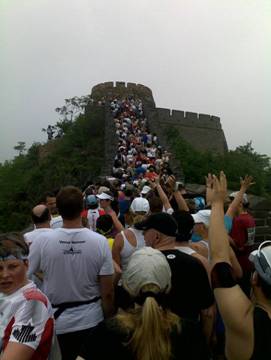 (Marathon, Halbmarathon, 10km), was zu Stau auf der Mauer und längeren