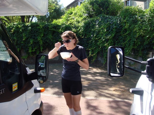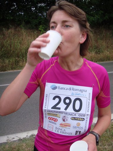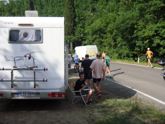 des Laufs (km 48). Aldo schenkt uns Wein ein,