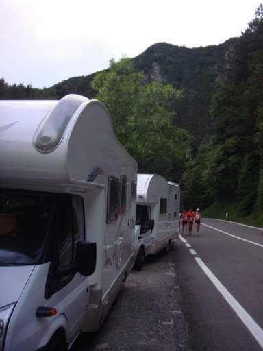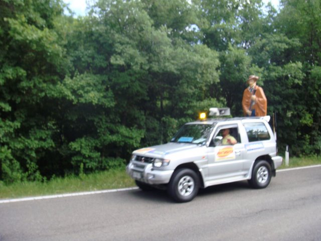 Begleitfahrzeuge der Veranstalter reichen uns zwischendurch noch kleine