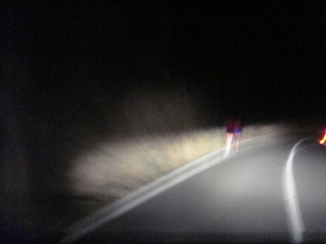 Bis zur Hälfte (km50) zwei Berge! Ab dann ist es Nacht. |