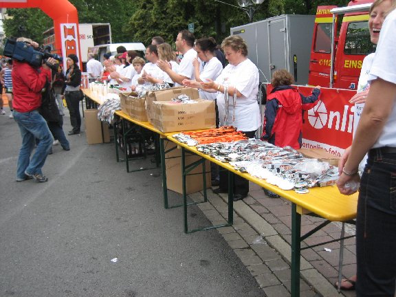 Wenige Meter hinter dem Start liegen schon die Finishermedaillien