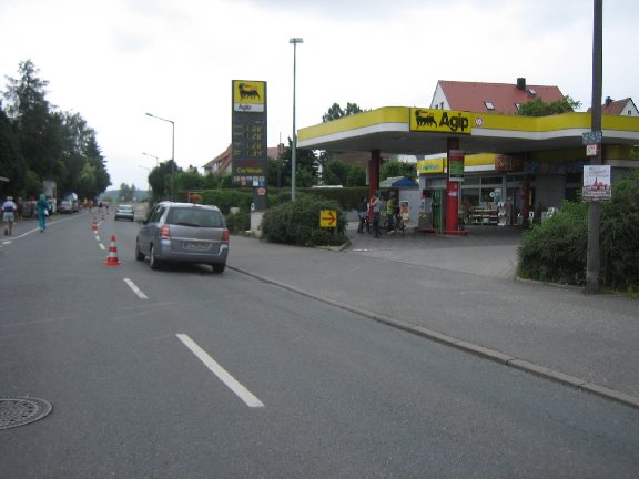 Der Tankstellenpächter hat Zeit uns zuzuschauen.