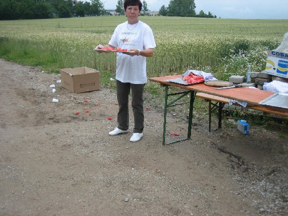 Alle 2 km gibt es Erfrischungen und die Helfer stehen gut aufgereiht