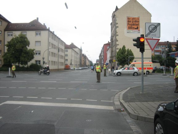 roter Ampel, kreuzend die Schwabacher Strasse