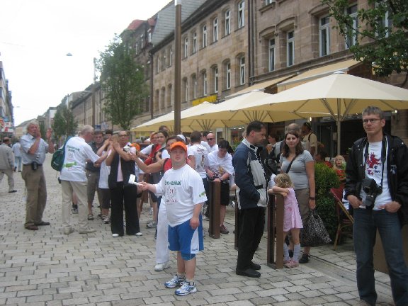 Auf der langen Zielgeraden lassen wir uns feiern.