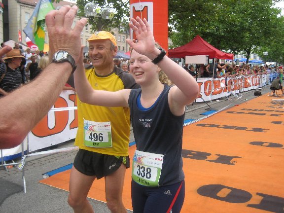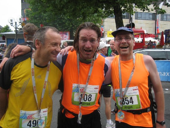 Glücklich und zufrieden nach dem Zieleinlauf. Eigentlich sehen wir ja