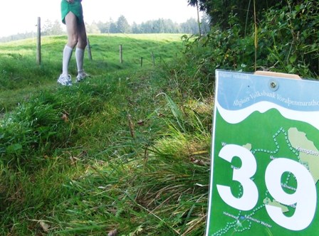 Km16: Keiner vor uns, aber der Weg muss richtig sein: Roter Pfeil. |
