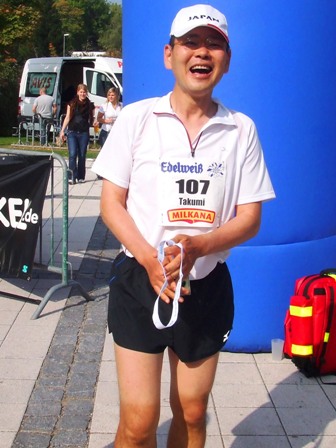 Takumi ist bei seinem 2. dt. Marathon "happy" im Ziel. |