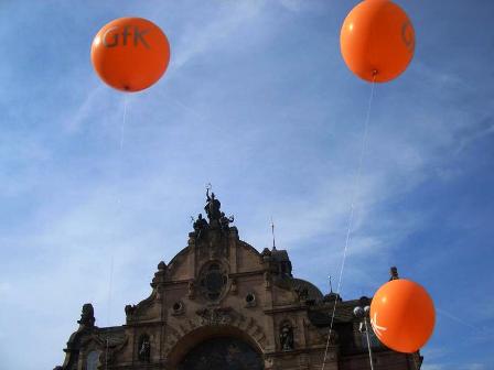 Ballons fliegen am Start hoch |