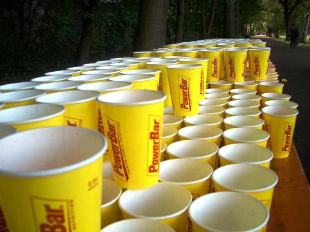 Verpflegung2: Becherreihen mit Wasser. |