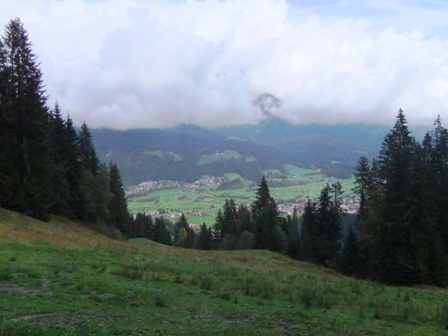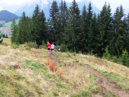 Tanzboden, von dort flacher und fallend über Eiberg-Alm und Holzalm bis