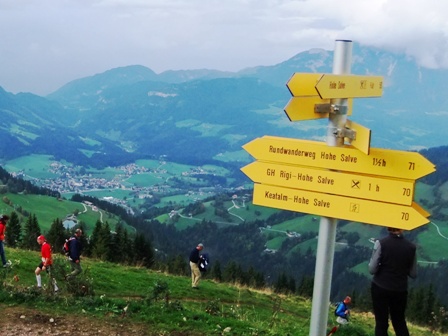 Jägerhütte zum Panorama-Restaurant Bergkaiser. Dann auf Wanderwegen zum