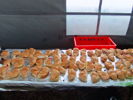 die so lecker aussehenden Brötchen. Endlich taucht auch Thomas im Ziel