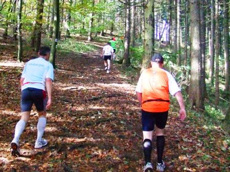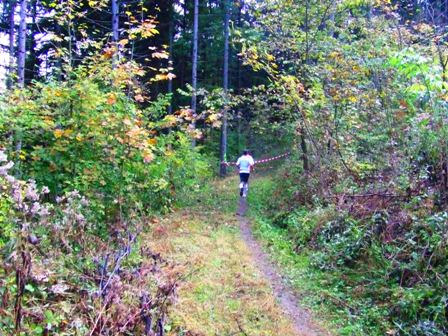 Wir verschwinden in den Wald auf den schmalen Trail-Pfad... |