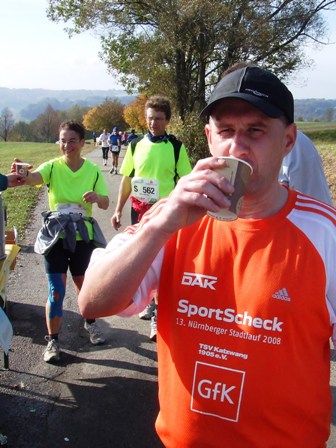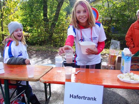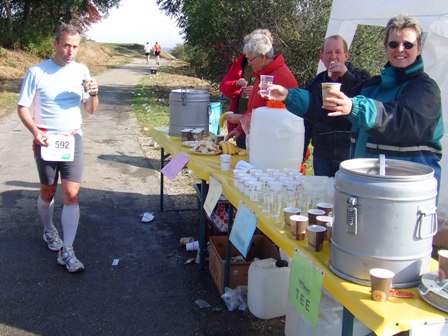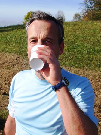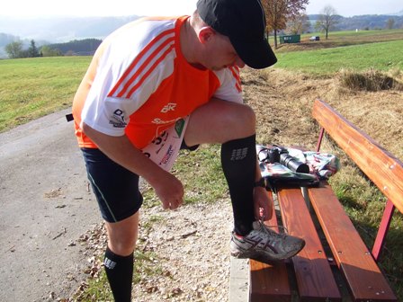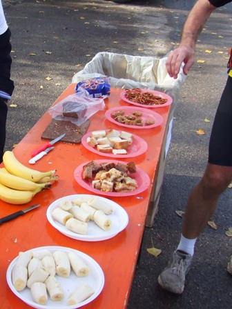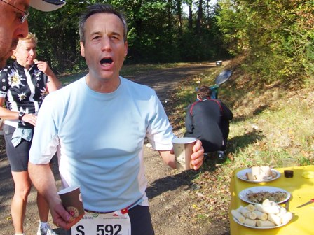 Verpflegung km32: Bäckerfrische Müsliriegel, warmer Tee, Bananen. |