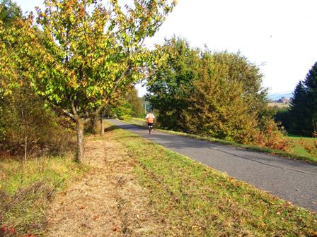 Km43: Ab jetzt sind wir auf der flachen ehem. Bahntrasse. |