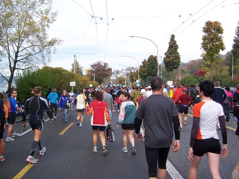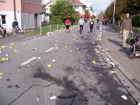Am Straßenrand klatscht man uns Läufer(inne)n Beifall. |