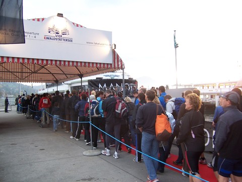 Schlange stehen zur Überfahrt zum Start ... |