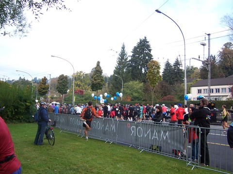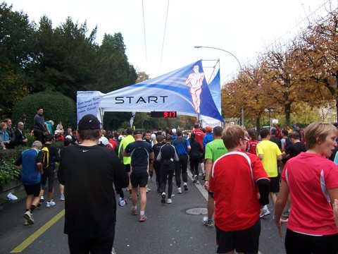 Am Start sammeln sich langsam die Läuferinnen und Läufer, |