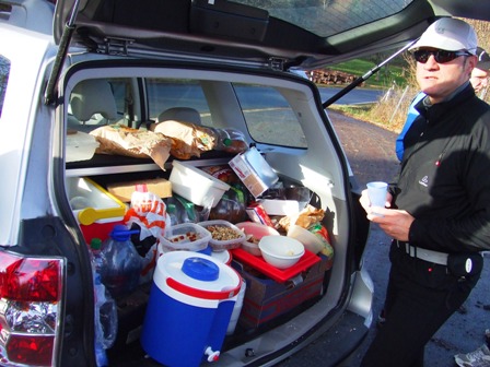 Verpflegungsstelle: Der reich gefüllte Kofferraum von Gaby lädt ein. |