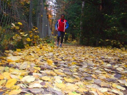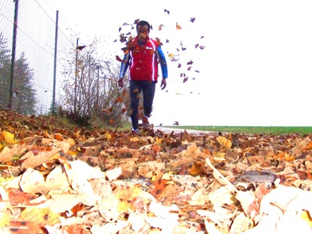 Julio wirbelt die letzten Blätter des bunten Herbstlaubs auf