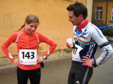 Startunterlagen holen. Ich suche derweil einen Parkplatz. Warmlaufen