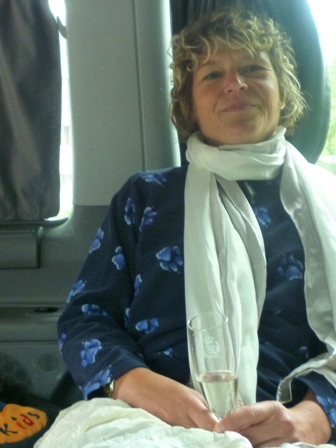Heike glückselig beim zweiten Gläschen Sekt |