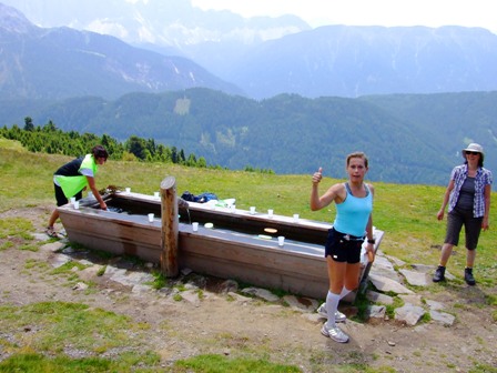 Original Südtirol: Bergwasser-Verpflegung aus der Tränke |