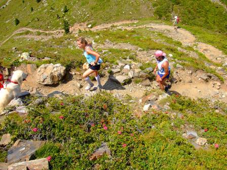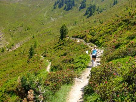 Links Bergrosen. Wir holen Marianne ein, sichtlich erfreut... |