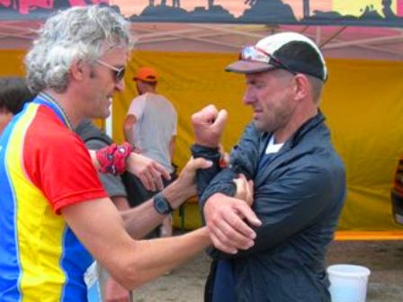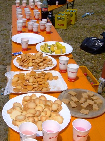 Verpflegungspunkt km30: Wir schwitzen ganz schön kräftig. Trinken! |