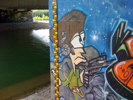 Lustiges Graffiti am Wasserstandsanzeiger |