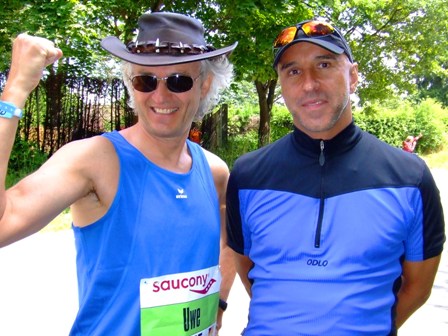 Hier kommen die Radfahrer an: Mein Läufer-Start... |