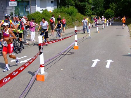 ...und gehe dann in die "Wechselzone Rad/Laufen":