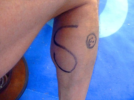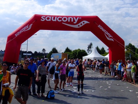 ...ist in 30 min. Unser Schwimmer Rainer gibt mir meine Startnummer