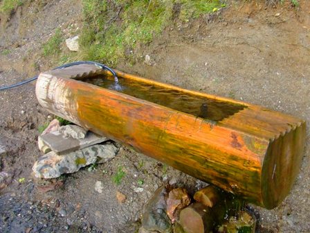 ...und Mathias füllt wieder seine Trinkflasche im Rucksack auf |