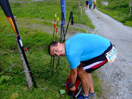 Wir machen Rast an der Seilbahn-Bergstation: VP2. Dann steil