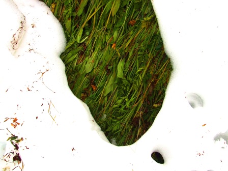 Schnee mit Loch. Schmeckt wie Eis am Stil |