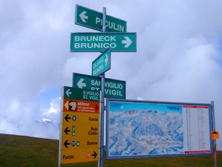 Und wohin jetzt? Aha, nach St. Vigil, den orangenen Pfeilen folgen |