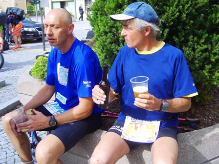 Mathias und ich plaudern im Ziel. Hey warte mal...