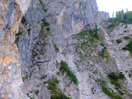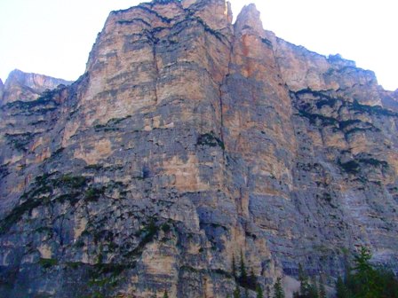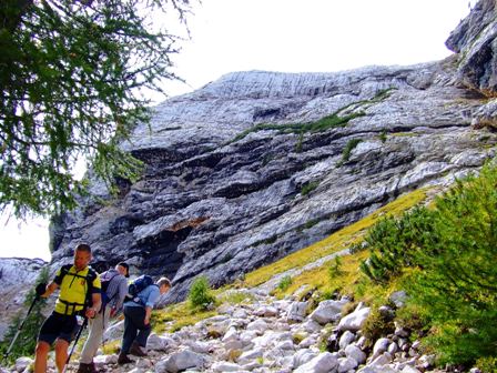 Steile Wand ragt neben uns auf |