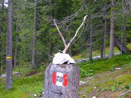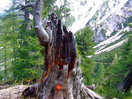 Markierung an einem Baumstumpf |