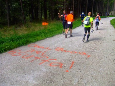 Oans, Zwoa, Gsuffa! Noch 4km bis zum Bier. |