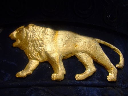 Am Brunnen neben dem Ziel brüllt der goldene Löwe |
