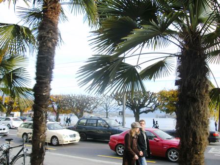 Schattenlinien über die mondänen Stadthäuser und Empirehotels am See.