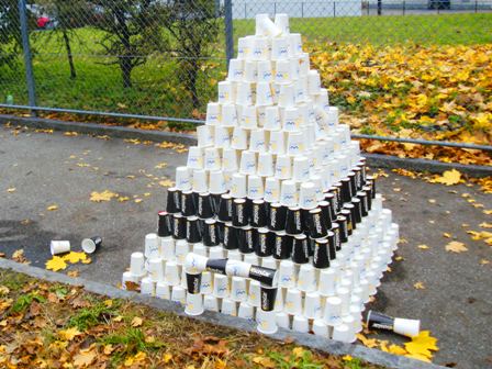einer Entfernung von 800 m auf einem Schulhof untergebracht, dann