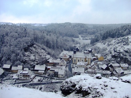 Blick ins verschneite Tal |